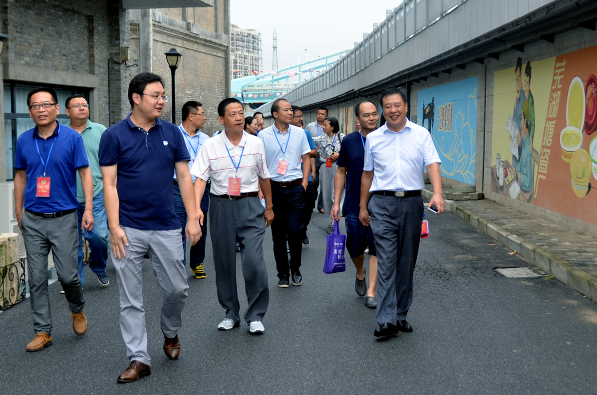 卞總向調(diào)研團(tuán)匯報(bào)了園區(qū)的歷史傳承、改造歷程及目前的基本發(fā)展情況。帶領(lǐng)參觀了益新面粉大樓及大礱坊歷史文化長(zhǎng)廊,作為蕪湖工業(yè)象征的“兩個(gè)半煙囪”的僅存見證,百年益新面粉大樓在經(jīng)過修整后也再次踏上新的征程。而在今年8月正式竣工的大礱坊歷史文化長(zhǎng)廊,利用墻繪的方式,生動(dòng)的記錄了礱的誕生以及大礱坊的工業(yè)歷史變遷,長(zhǎng)達(dá)450米的手工墻繪,目前已成為蕪湖的一張文化名片。