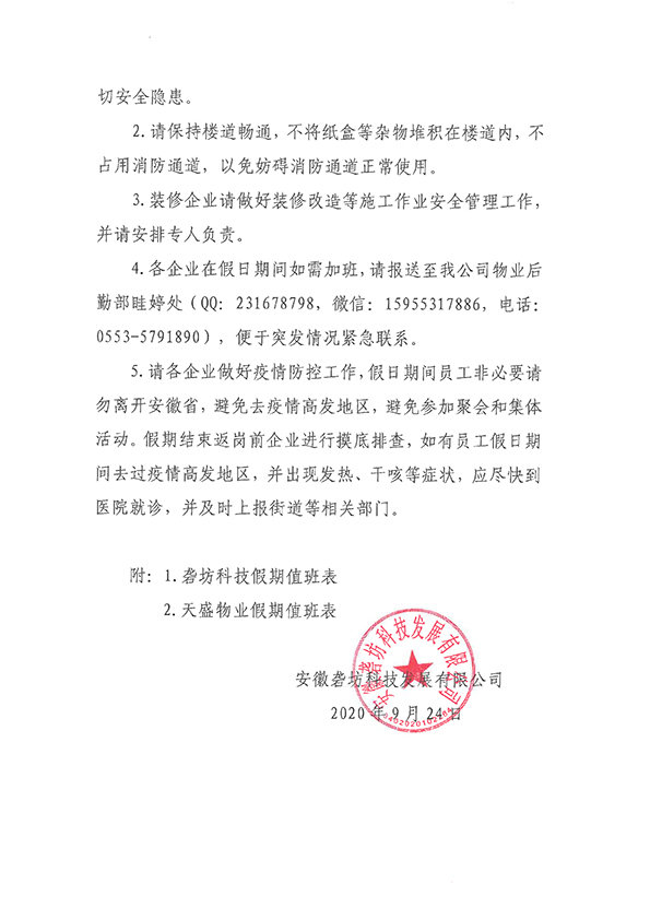 關(guān)于做好2020 年中秋、國慶假期安全工作的通知